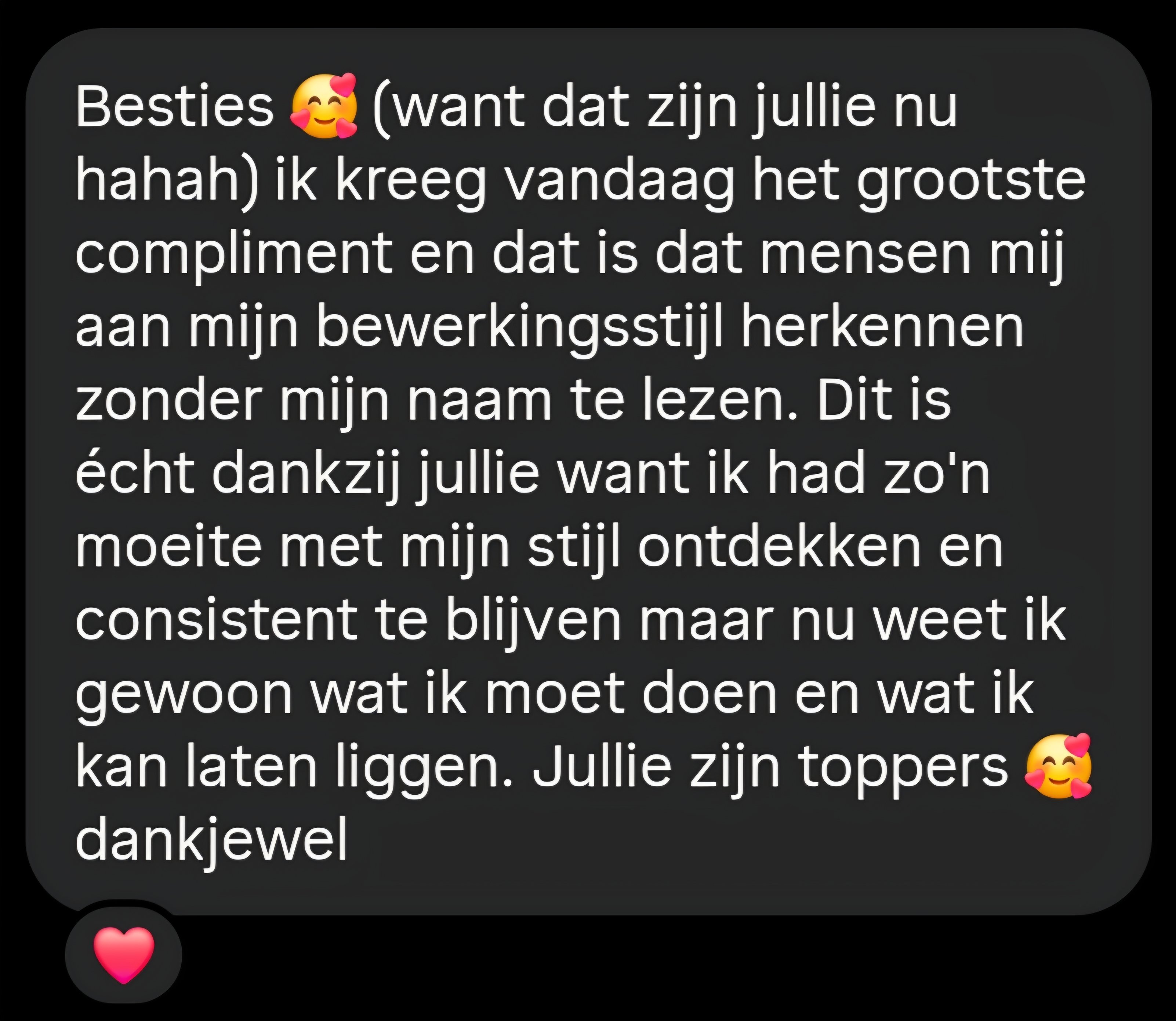 Je leert stap voor stap hoe je consistent bewerkt, hoe je kleuren onder controle krijgt en hoe je een eigen stijl opbouwt die bij jou past. Zonder technische taal & zonder overbodige functies die je nooit gebruikt.